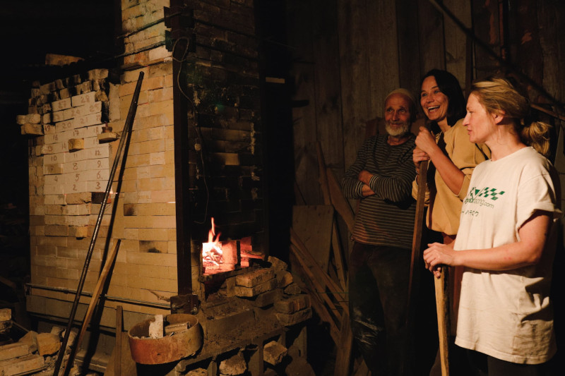 During firings, we work in pairs and take turns keeping the kiln going. On the last day, we open the kiln together and take out the finished pieces.